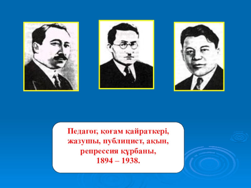 Слайд 19Педагог, қоғам қайраткері, жазушы, публицист, ақын, репрессия құрбаны,