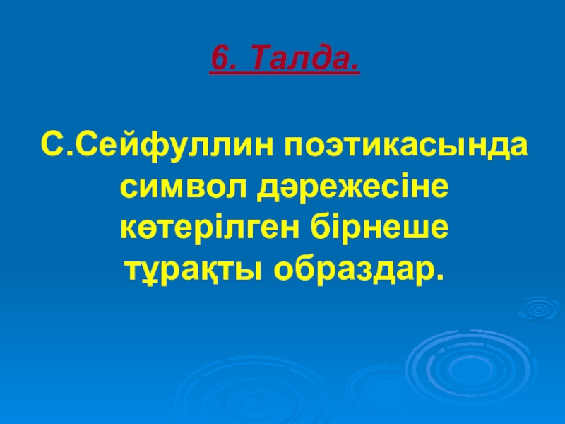 6. Талда. С.Сейфуллин поэтикасында символ дәрежесіне көтерілген бірнеше тұрақты образдар.