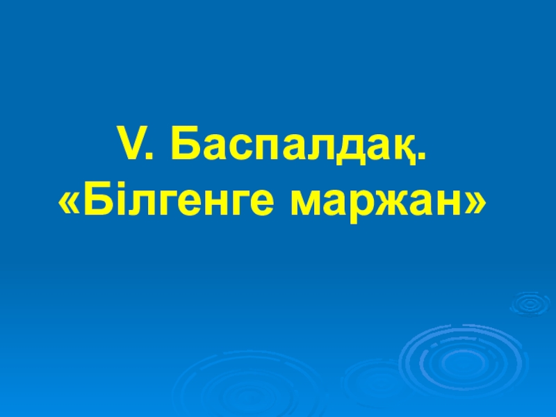 V. Баспалдақ. «Білгенге маржан»