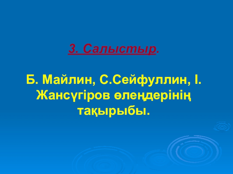 3. Салыстыр. Б. Майлин, С.Сейфуллин, І.Жансүгіров өлеңдерінің тақырыбы.
