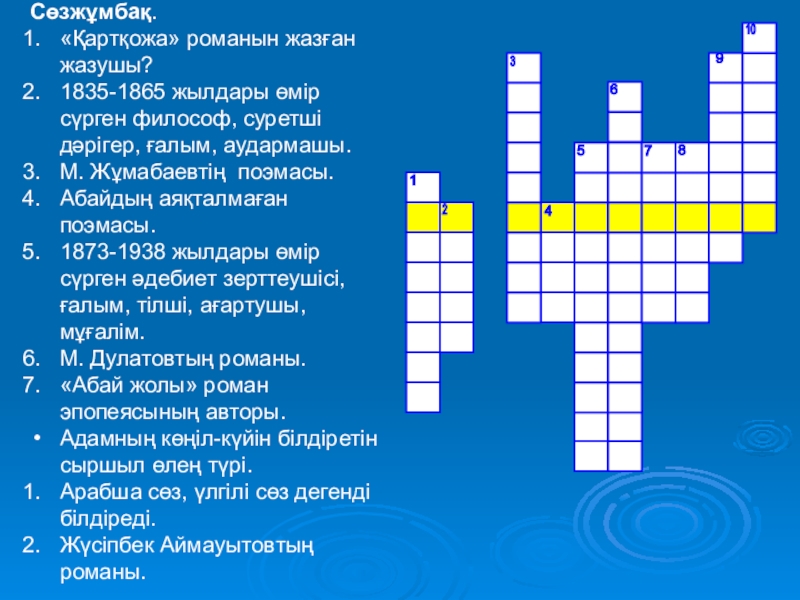 Слайд 8Сөзжұмбақ.
