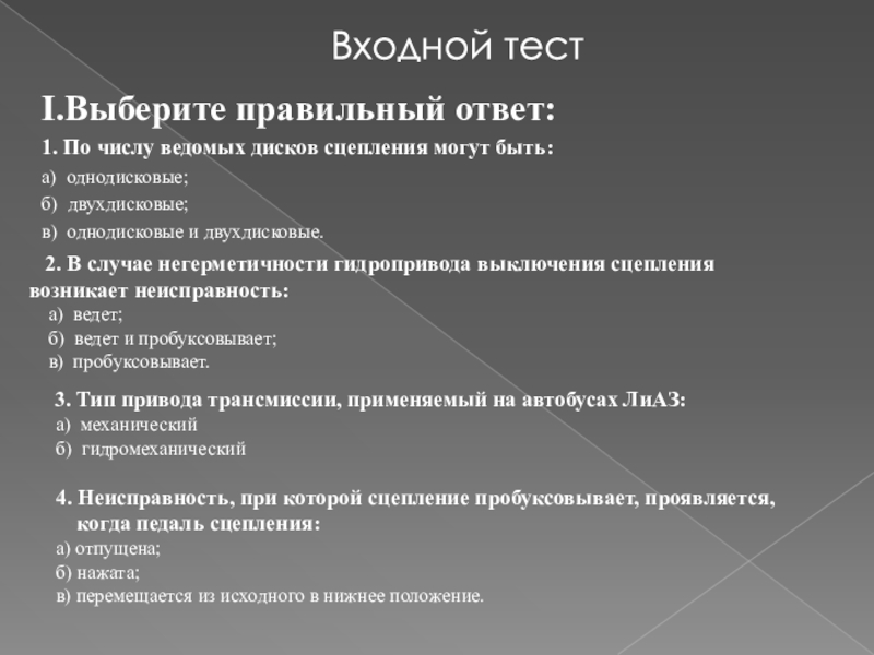 3. Тип привода трансмиссии, применяемый на автобусах ЛиАЗ: