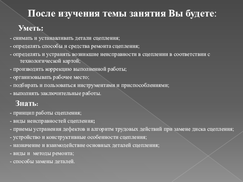 2. В случае негерметичности гидропривода выключения сцепления возникает неисправность: