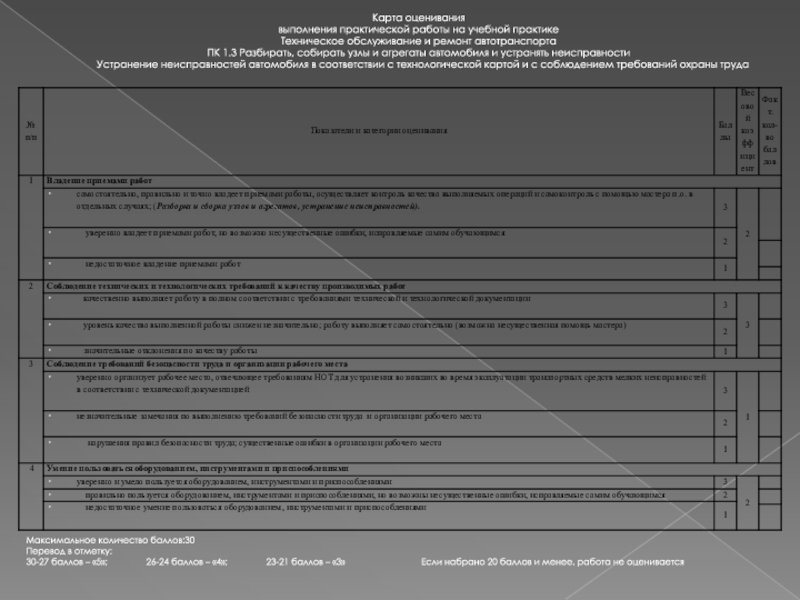 30-27 баллов – «5»; 26-24 баллов – «4»; 23-21 баллов – «3» Если набрано 20 баллов и менее, работа не оценивается
