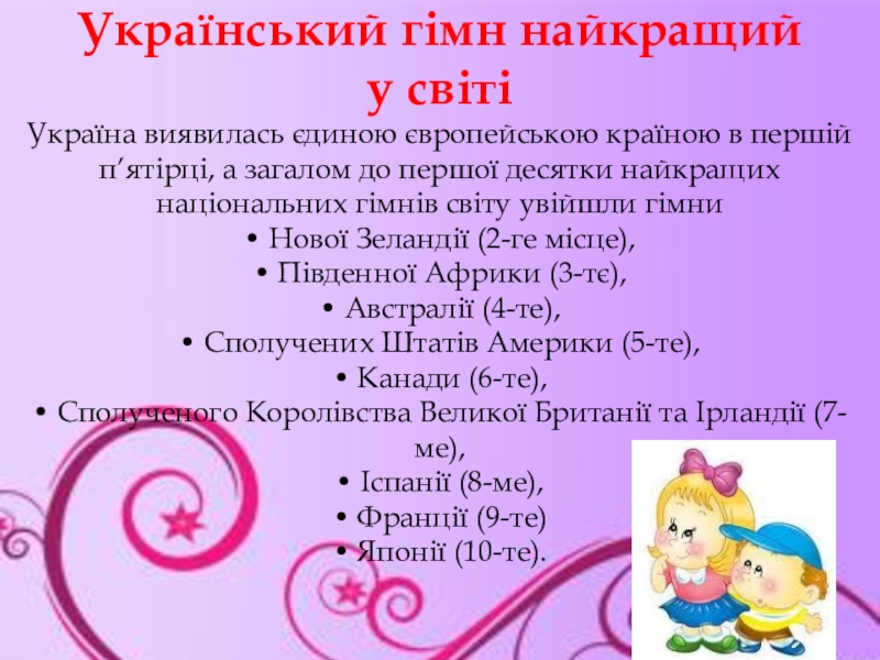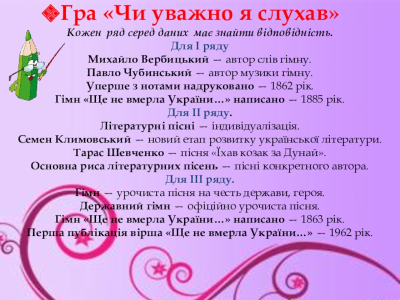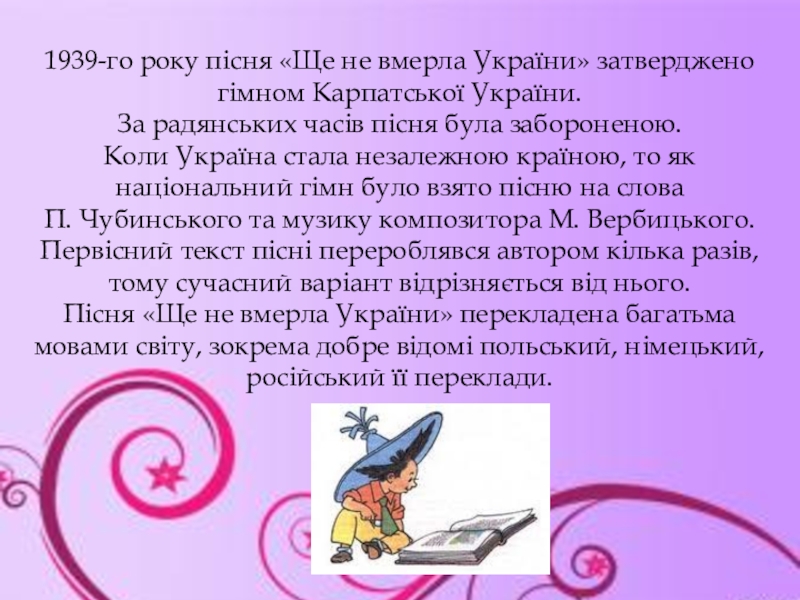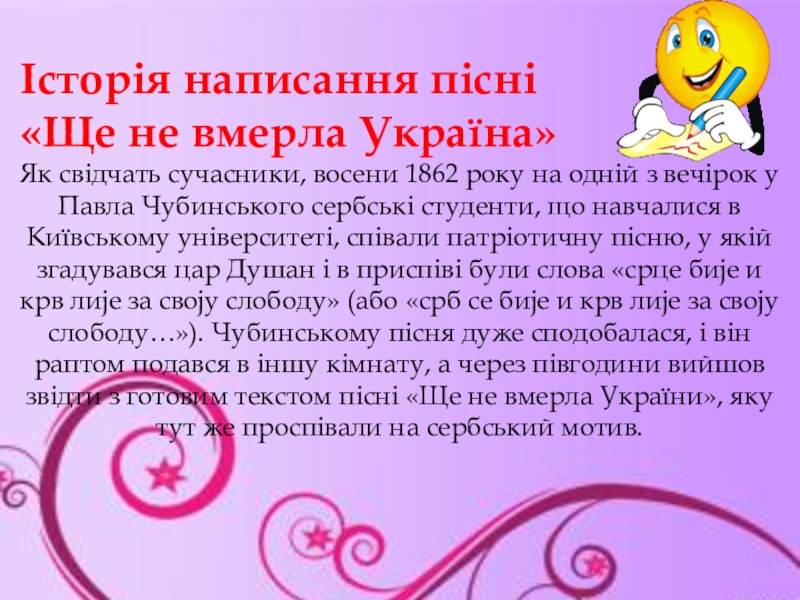 П.Чубинського, М.Вербицького — національний гімн нашої держави