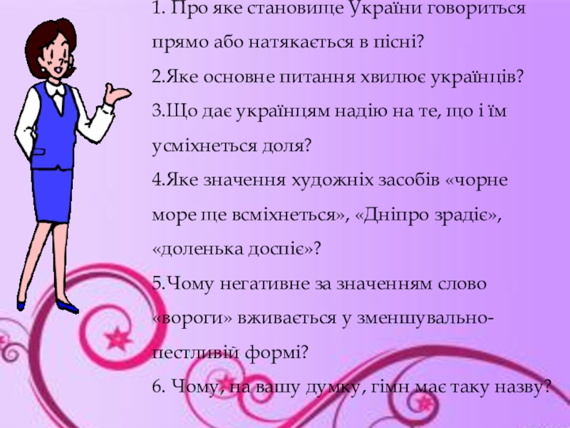 Слайд 201. Про яке становище України говориться прямо або натякається в пісні?