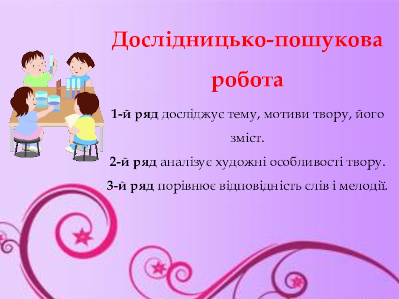 1-й ряд досліджує тему, мотиви твору, його зміст.