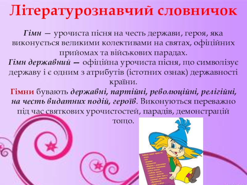 Гімн — урочиста пісня на честь держави, героя, яка виконується