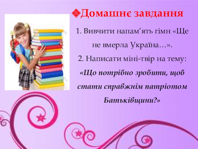1. Вивчити напам’ять гімн «Ще не вмерла Україна…».