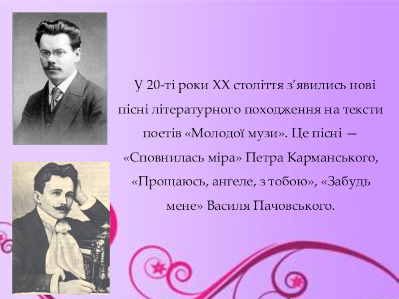 У 20-ті роки ХХ століття з’явились нові пісні літературного походження на