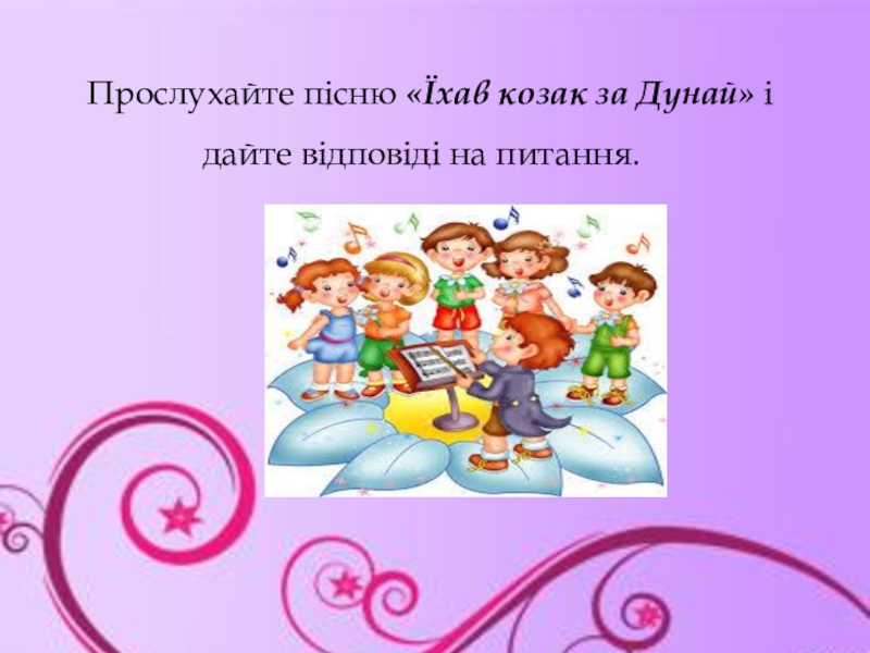 Прослухайте пісню «Їхав козак за Дунай» і дайте відповіді на