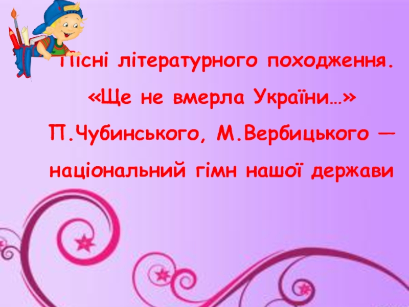 Слайд 2Пісні літературного походження. «Ще не вмерла України…»