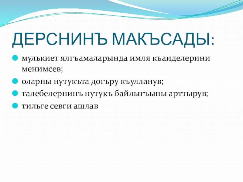 Слайд 3ДЕРСНИНЪ МАКЪСАДЫ:
