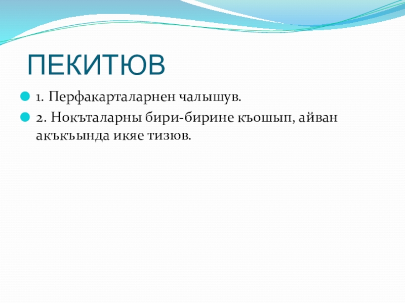 ПЕКИТЮВ1. Перфакарталарнен чалышув.2. Нокъталарны бири-бирине къошып, айван акъкъында икяе тизюв.
