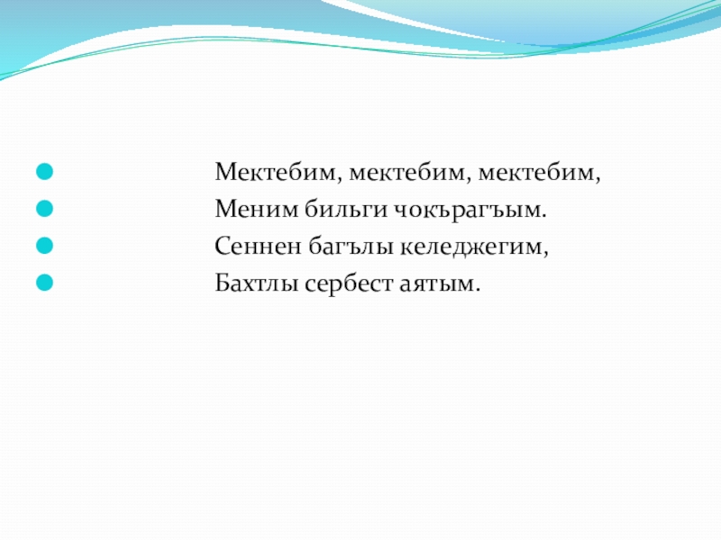 Бизим мектеп… , сыныф… , макъсат… , терек…,