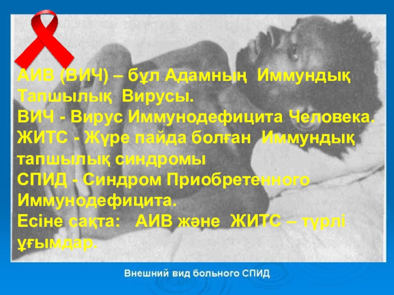 АИВ (ВИЧ) – бұл Адамның Иммундық Тапшылық Вирусы. ВИЧ - Вирус Иммунодефицита Человека. ЖИТС -