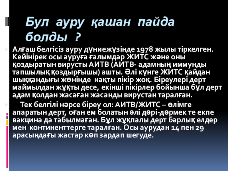 Презентация, доклад на тему Урок ЖИТС -ғасыр дерті