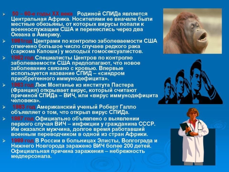 жылы тіркелген. Кейінірек осы ауруға ғалымдар ЖИТС және оны қоздыратын вирусты АИТВ (АИТВ- адамның иммунды тапшылық қоздырғышы) ашты. Әлі күнге ЖИТС қайдан шыққандығы жөнінде нақты пікір жоқ. Біреулері дерт маймылдан жұқты десе, екінші пікірлер бойынша бұл дерт адам қолдан жасаған жасанды вирустан таралған.