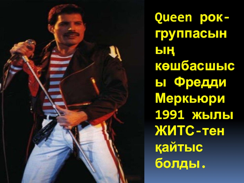 Слайд 11Queen рок-группасының көшбасшысы Фредди Меркьюри 1991 жылы ЖИТС-тен қайтыс болды.