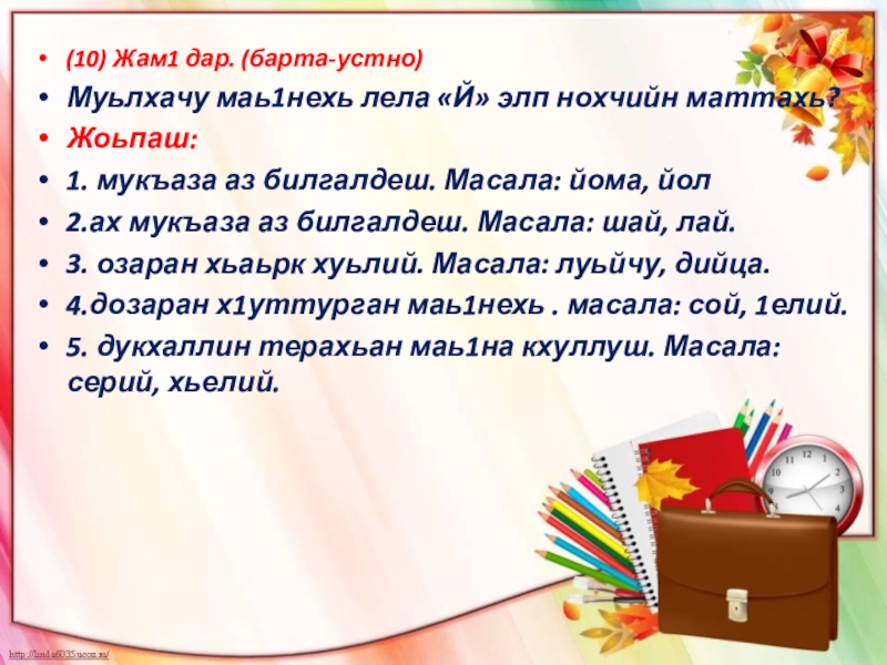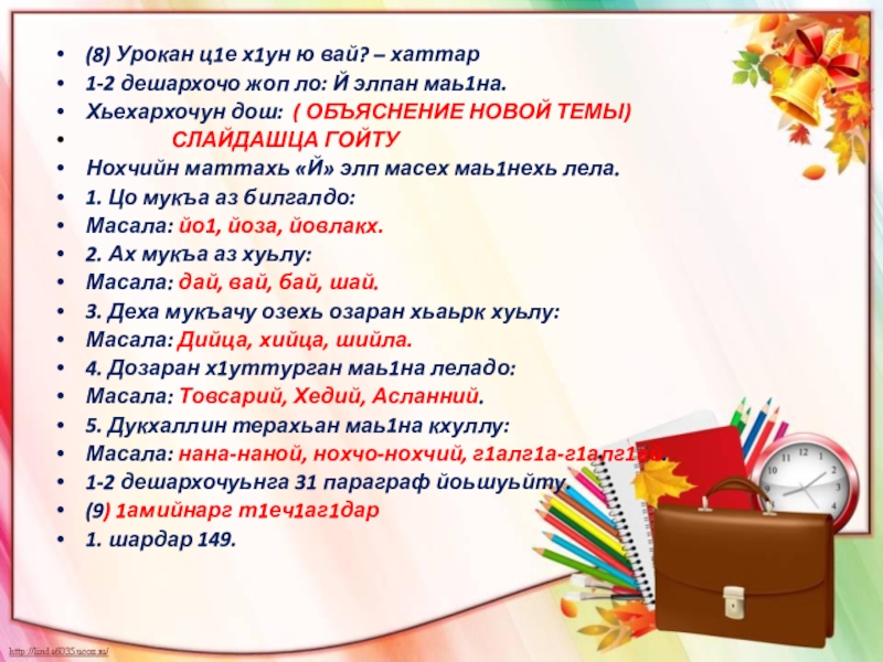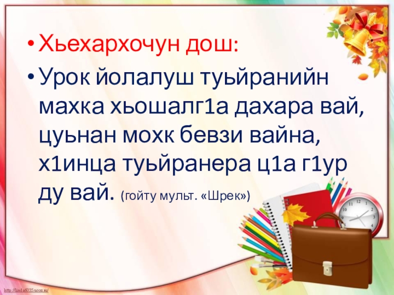 Хьехархочун дош: ( ОБЪЯСНЕНИЕ НОВОЙ ТЕМЫ)