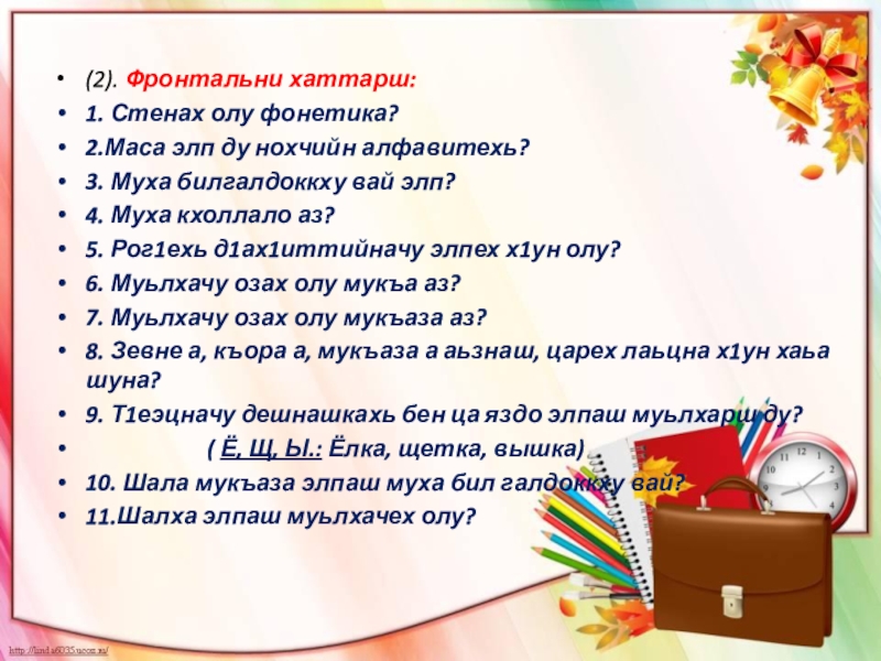 Слайд 17(8) Урокан ц1е х1ун ю вай? – хаттар