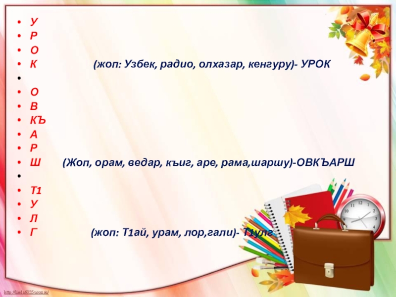 (жоп: Узбек, радио, олхазар, кенгуру)- УРОК
