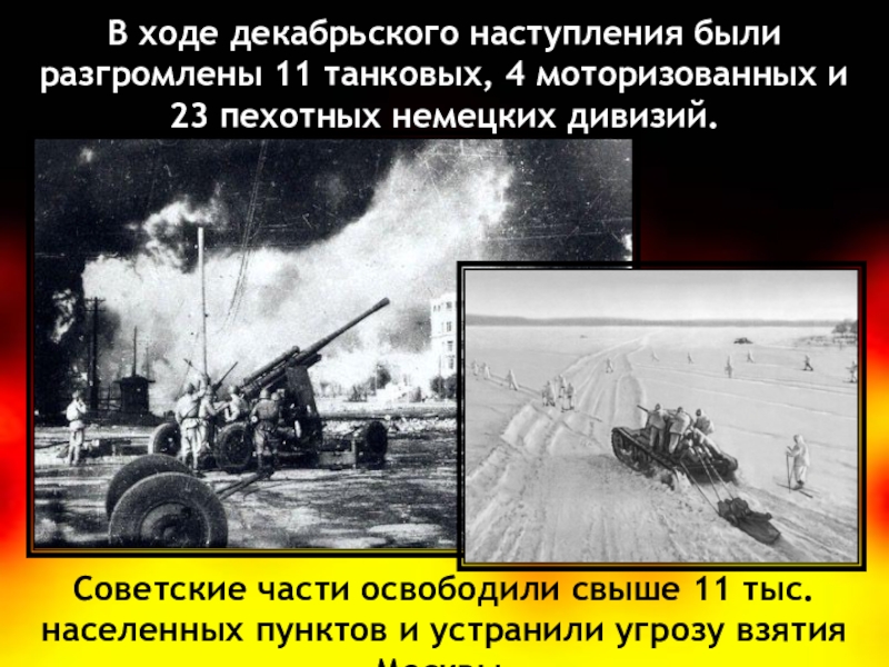В ходе декабрьского наступления были разгромлены 11 танковых, 4 моторизованных и 23 пехотных немецких дивизий.
