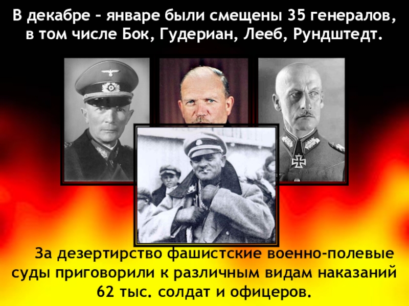За дезертирство фашистские военно-полевые суды приговорили к различным видам наказаний 62 тыс. солдат и офицеров.