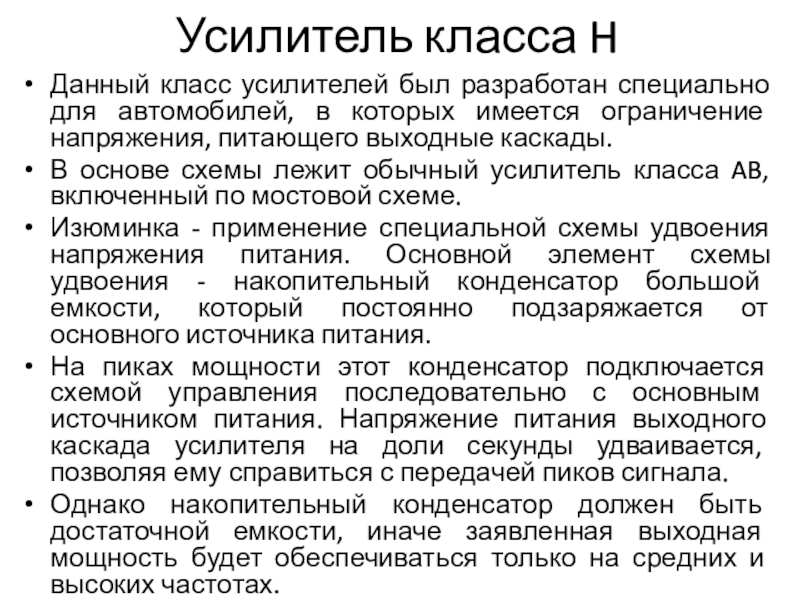 Слайд 13Типичными представителями усилителей класса H являются L-1800, Q-4300 Inter-M, RX-Extra 2800,