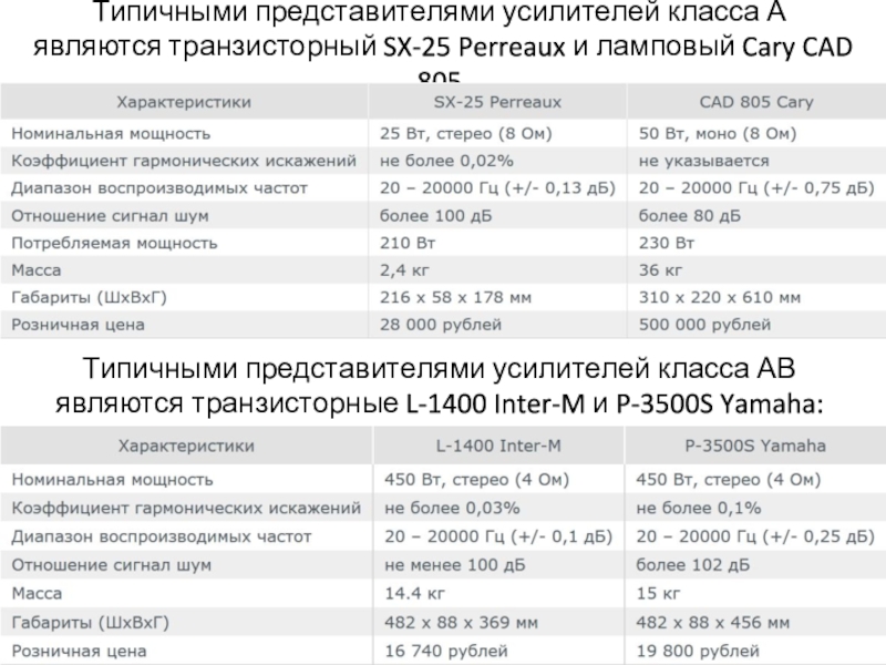 Слайд 8Типичными представителями усилителей класса А являются транзисторный SX-25 Perreaux и ламповый