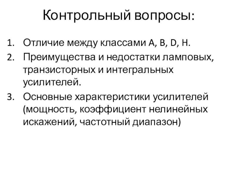 Слайд 6Усилители мощности звуковой частоты разделяются на несколько распространенных классов