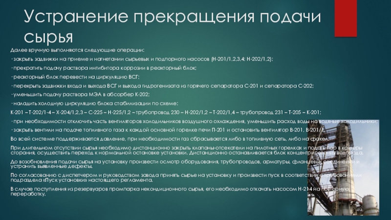 Слайд 1Устранение прекращения подачи сырья в колонну