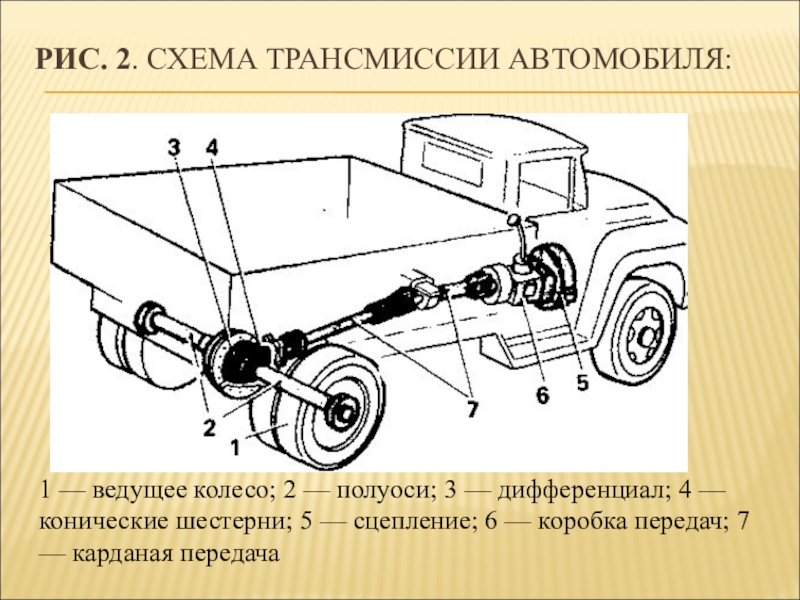 Слайд 8РИС. 2. СХЕМА ТРАНСМИССИИ АВТОМОБИЛЯ: