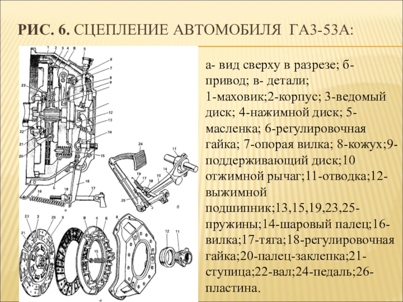 Слайд 13РИС. 6. СЦЕПЛЕНИЕ АВТОМОБИЛЯ ГA3-53A:
