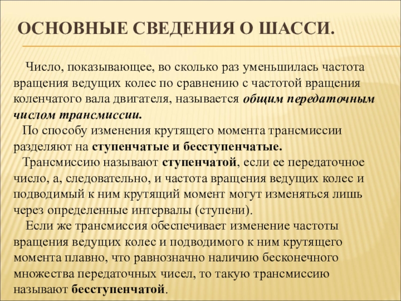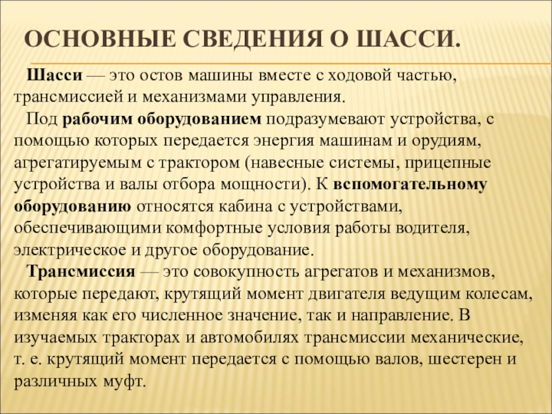 Слайд 6ОСНОВНЫЕ СВЕДЕНИЯ О ШАССИ.