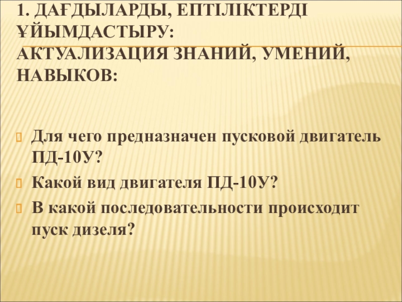 АКТУАЛИЗАЦИЯ ЗНАНИЙ, УМЕНИЙ, НАВЫКОВ: