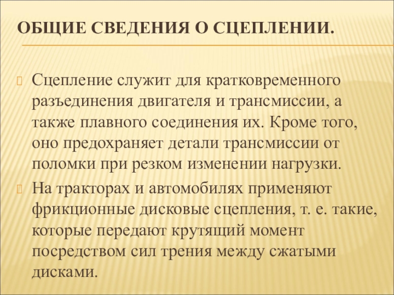 Слайд 10ОБЩИЕ СВЕДЕНИЯ О СЦЕПЛЕНИИ.