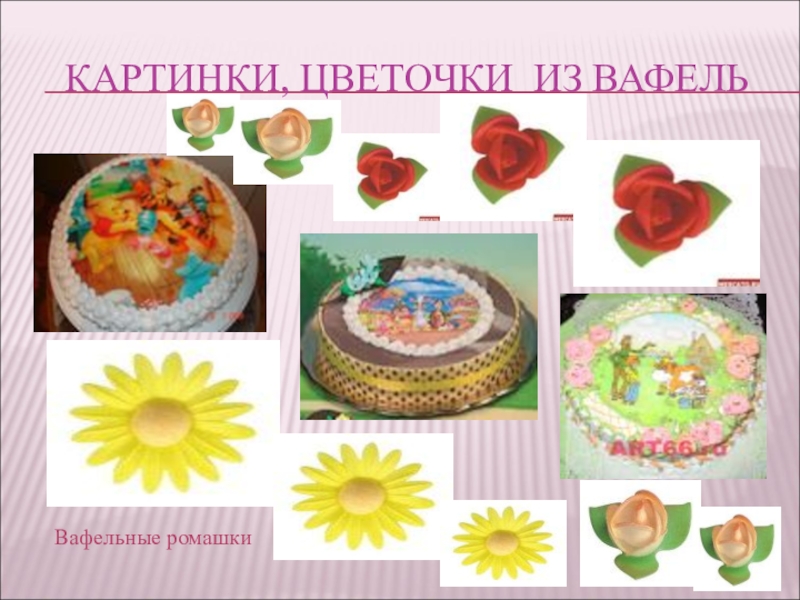 Слайд 27КАРТИНКИ, ЦВЕТОЧКИ ИЗ ВАФЕЛЬ