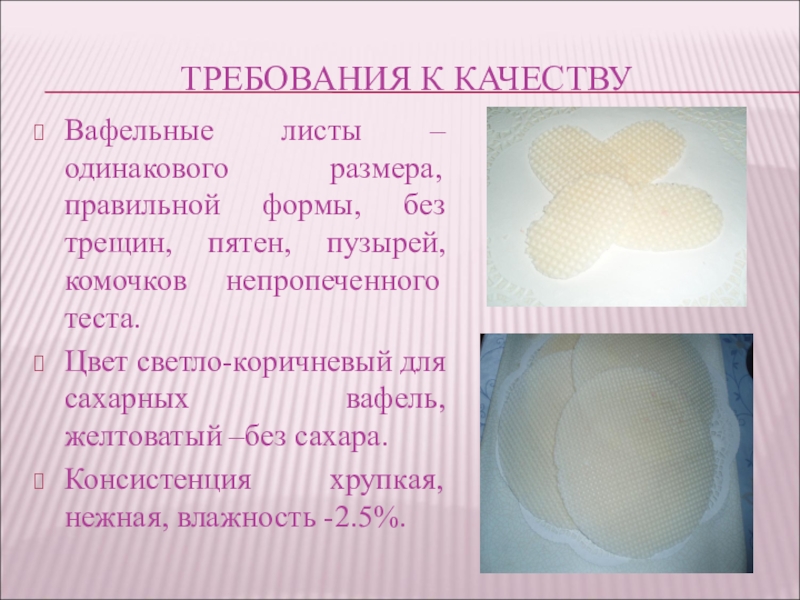 Вафельные листы – одинакового размера, правильной формы, без трещин,