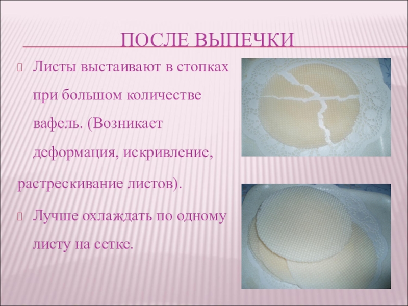 Листы выстаивают в стопках при большом количестве вафель. (Возникает деформация,