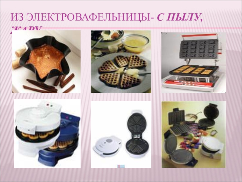 Слайд 9ИЗ ЭЛЕКТРОВАФЕЛЬНИЦЫ- С ПЫЛУ, ЖАРУ