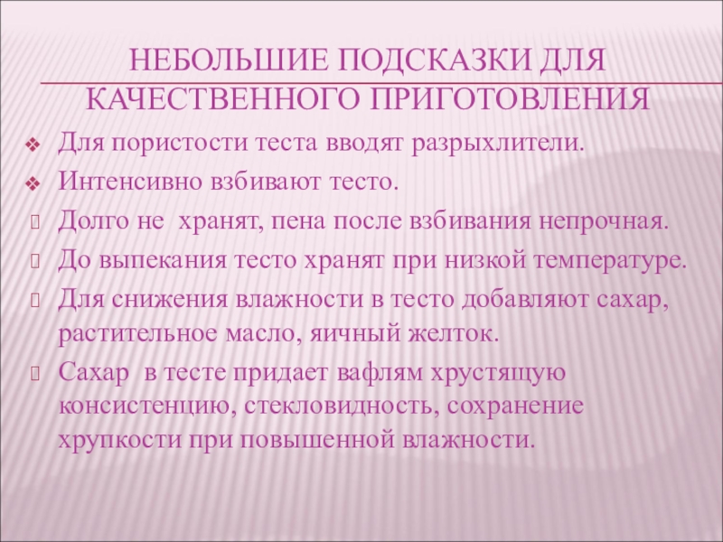 Слайд 5НЕБОЛЬШИЕ ПОДСКАЗКИ ДЛЯ КАЧЕСТВЕННОГО ПРИГОТОВЛЕНИЯ