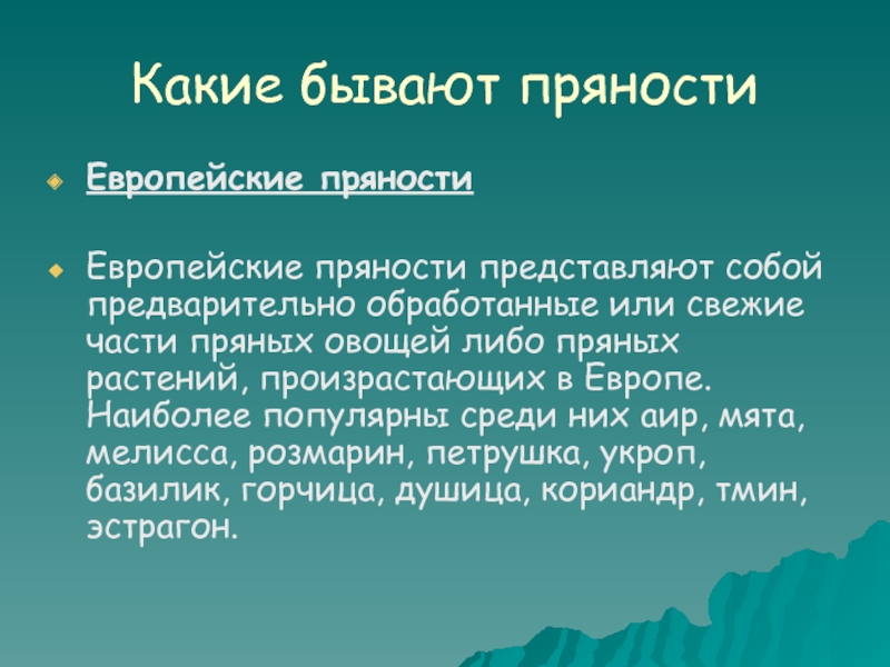 Европейские пряности представляют собой предварительно обработанные или свежие