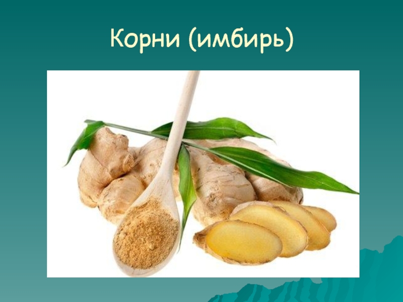 Слайд 7корни (имбирь),