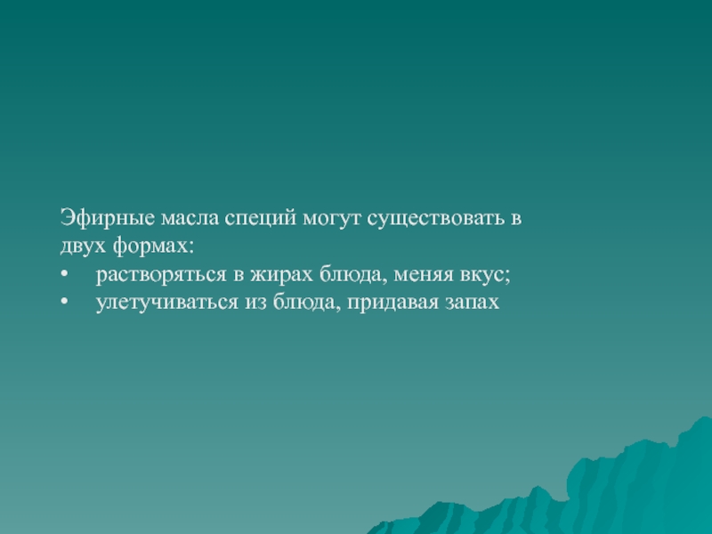 Слайд 17Эфирные масла специй могут существовать в двух формах: