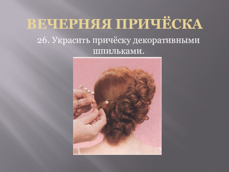 Вечерняя причёска26. Украсить причёску декоративными шпильками.