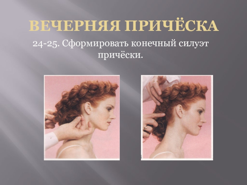 Вечерняя причёска24-25. Сформировать конечный силуэт причёски.