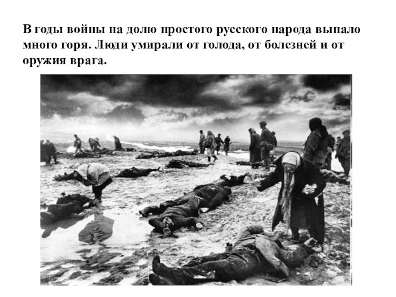 Слайд 6В годы войны на долю простого русского народа выпало много горя.