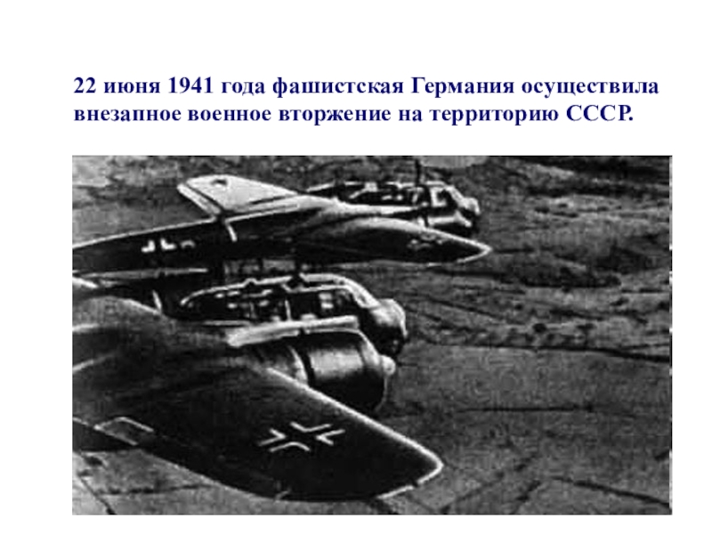Слайд 222 июня 1941 года фашистская Германия осуществила внезапное военное вторжение на
