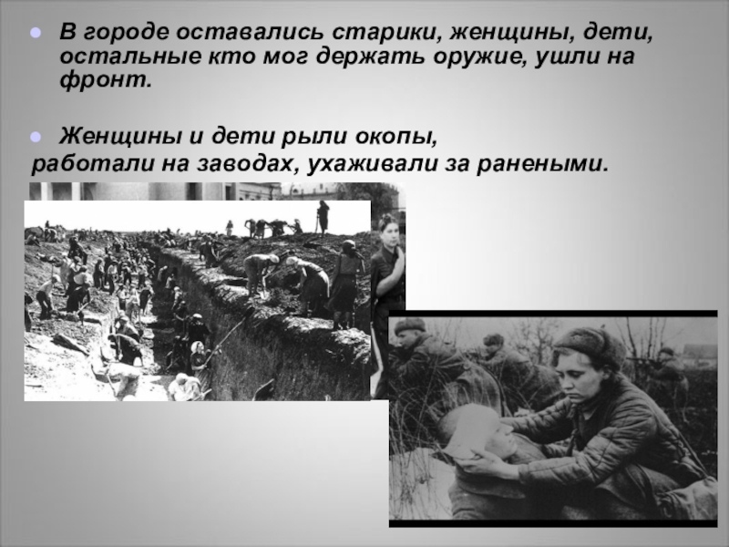 Слайд 13В городе оставались старики, женщины, дети, остальные кто мог держать оружие,